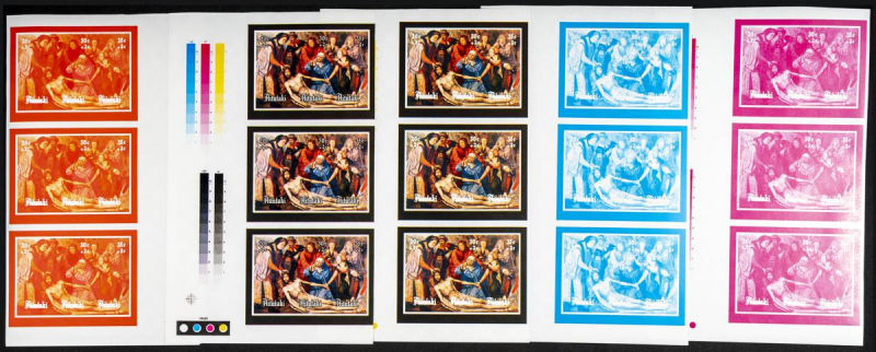 B28. 1980. Easter. Group of progressive plate proofs of the set. TO EXAM. Description of lots is limited to the cataloguing of the stamps and their characteristics. The total of the material included in each case is photographed to allow an