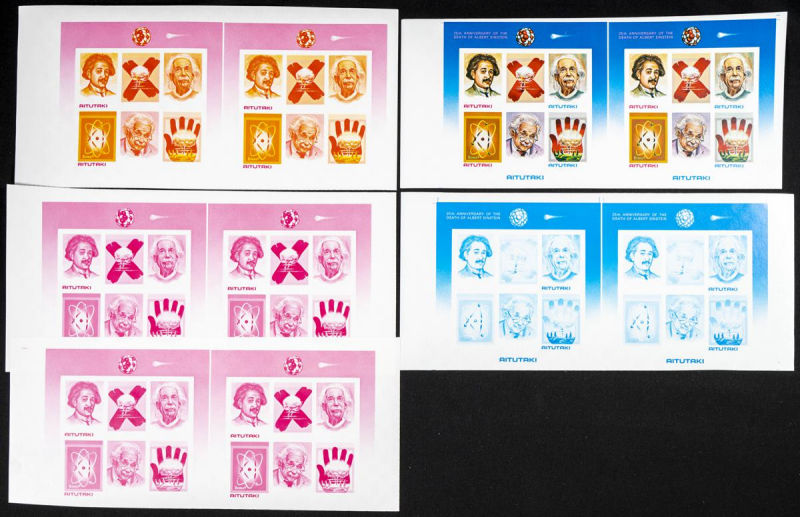 B29. 1980. Albert Einstein. Group of progressive plate proofs of the set. TO EXAM. Description of lots is limited to the cataloguing of the stamps and their characteristics. The total of the material included in each case is photographed to