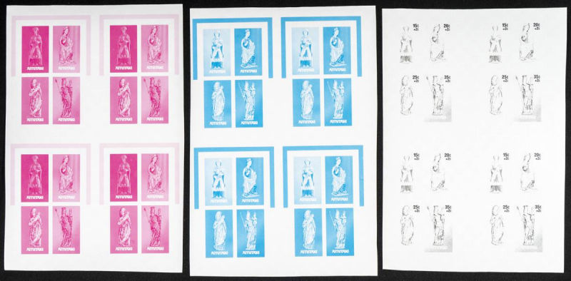 304/04. 1981. Christmas. Group of progressive plate proofs of the set. TO EXAM. Description of lots is limited to the cataloguing of the stamps and their characteristics. The total of the material included in each case is photographed to