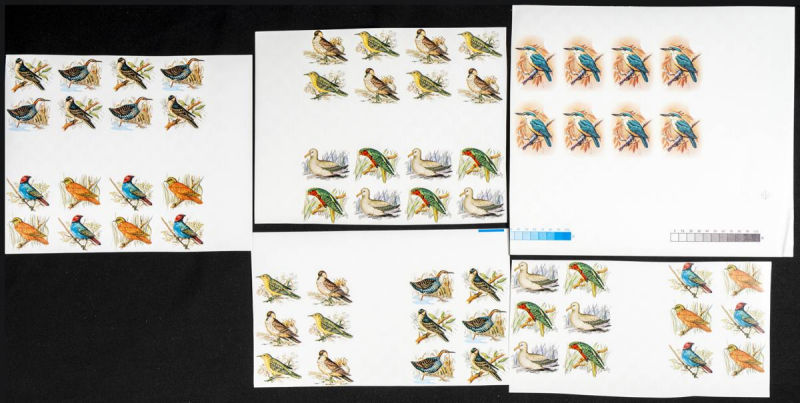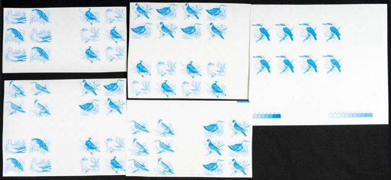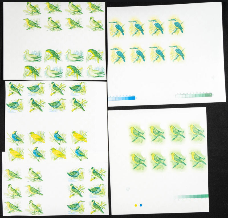 277/92. 1981. Birds. Group of progressive plate proofs of the set. TO EXAM. Description of lots is limited to the cataloguing of the stamps and their characteristics. The total of the material included in each case is photographed to allow