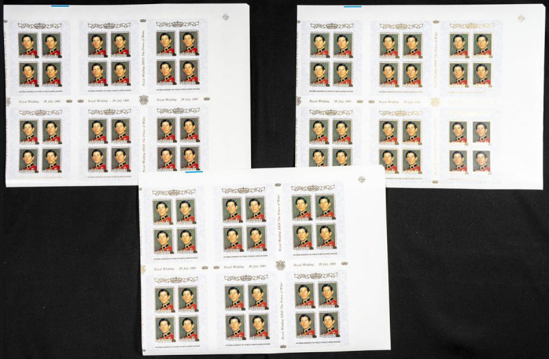 301/03. 1981. Royal wedding. Group of IMPERFORATED sets. TO EXAM. Description of lots is limited to the cataloguing of the stamps and their characteristics. The total of the material included in each case is photographed to allow an