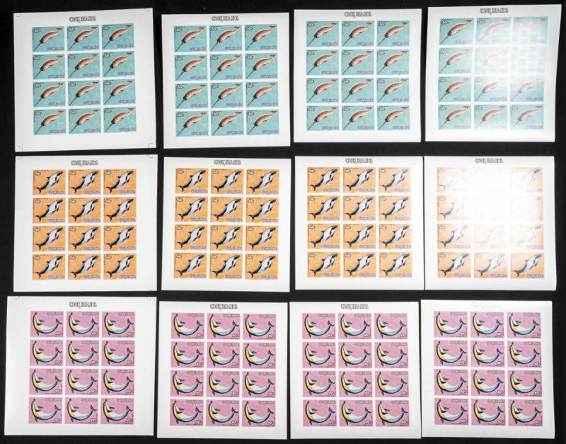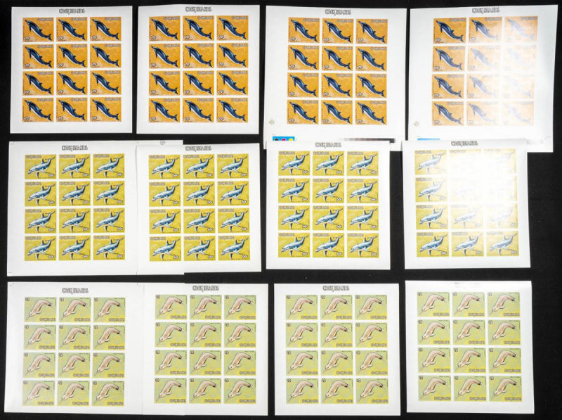 |**|Yvert 752/63. 1984. Whales. Group of IMPERFORATED sets. TO EXAM. Description of lots is limited to the cataloguing of the stamps and their characteristics. The total of the material included in each case is photographed to
