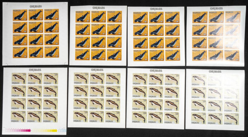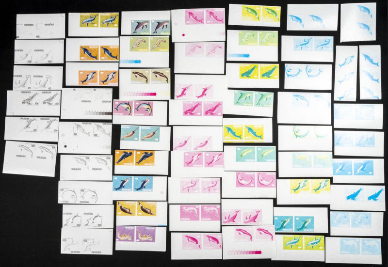 |**|Yvert 752/63. 1984. Whales. Group of progressive plate proofs of the set. TO EXAM. Description of lots is limited to the cataloguing of the stamps and their characteristics. The total of the material included in each case is
