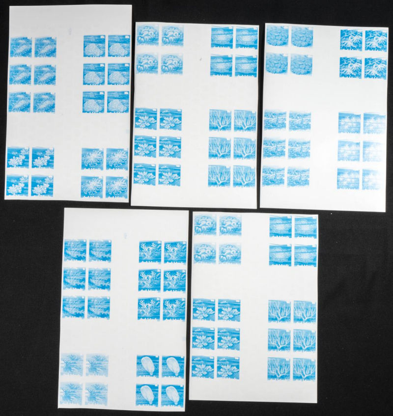 |**|Yvert . 1984. Corals. Group of progressive plate proofs of the set. (Michel: 978/06). TO EXAM. Description of lots is limited to the cataloguing of the stamps and their characteristics. The total of the material included in