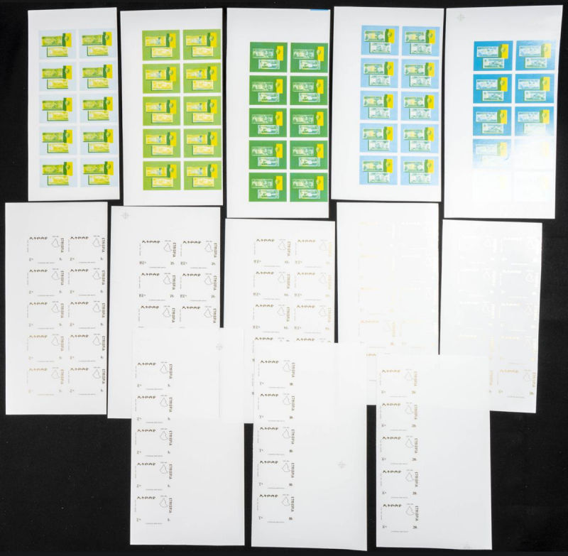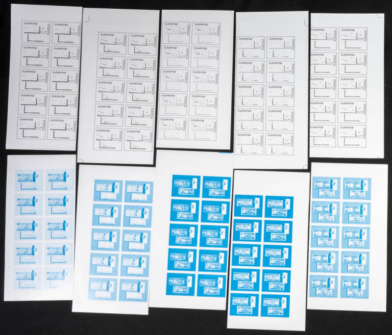 |**|Yvert 1230/34. 1988. Banknotes. Group of progressive plate proofs of the set. TO EXAM. Description of lots is limited to the cataloguing of the stamps and their characteristics. The total of the material included in each