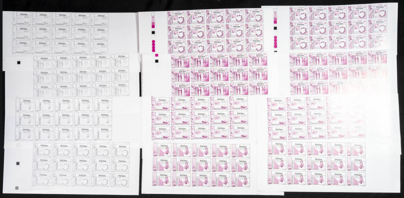 |**|Yvert 1214/19. 1988. Productivity. Group of progressive plate proofs of the set. TO EXAM. Description of lots is limited to the cataloguing of the stamps and their characteristics. The total of the material included in each