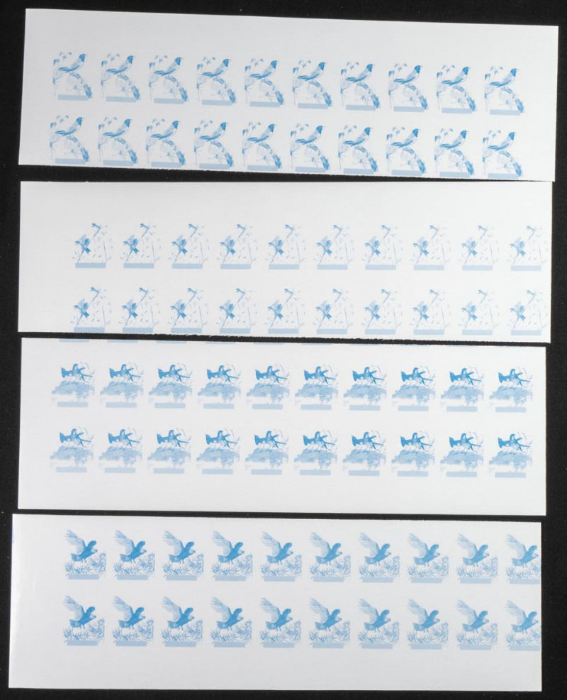 |**|Yvert 1246/49. 1989. Birds. Group of progressive plate proofs of the set. TO EXAM. Description of lots is limited to the cataloguing of the stamps and their characteristics. The total of the material included in each case is