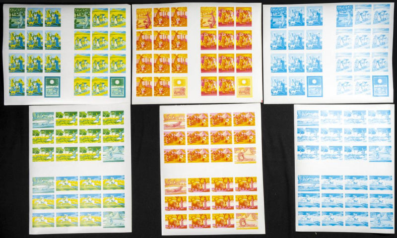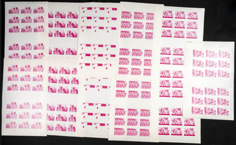 |**|Yvert 355/62. 1968. Fairy tales. Group of progressive plate proofs of the set. TO EXAM. Description of lots is limited to the cataloguing of the stamps and their characteristics. The total of the material included in each