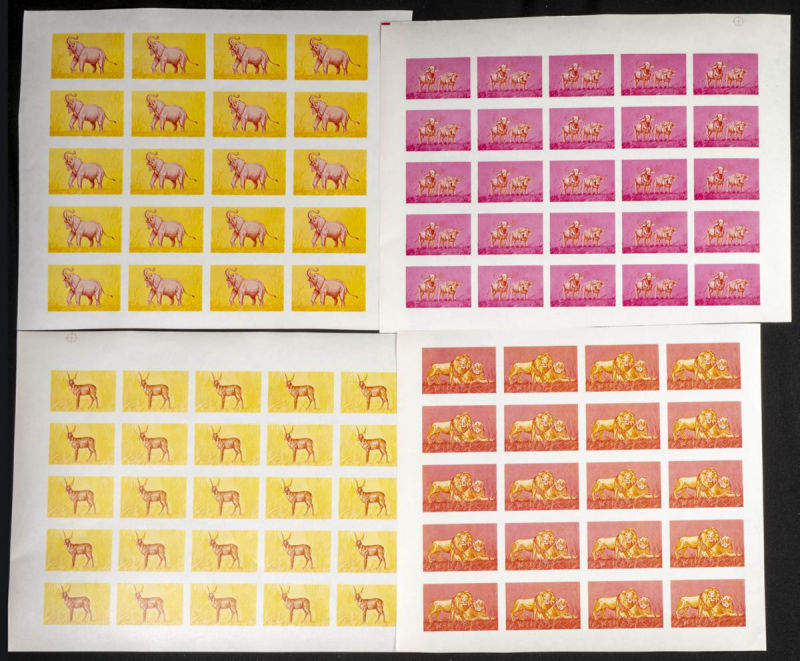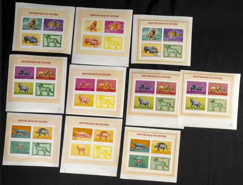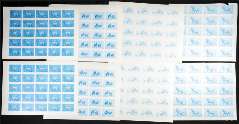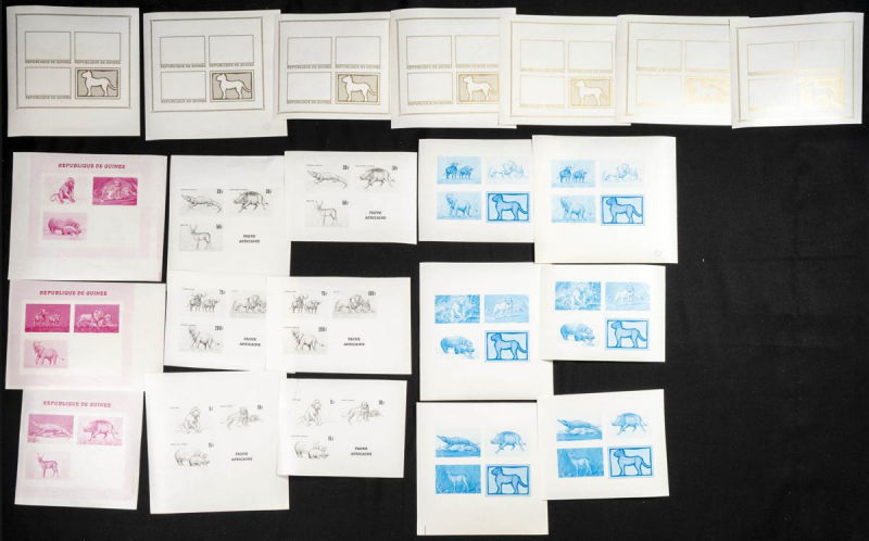|**|Yvert 363/69. 1968. Animals. Group of progressive plate proofs of the set. TO EXAM. Description of lots is limited to the cataloguing of the stamps and their characteristics. The total of the material included in each case