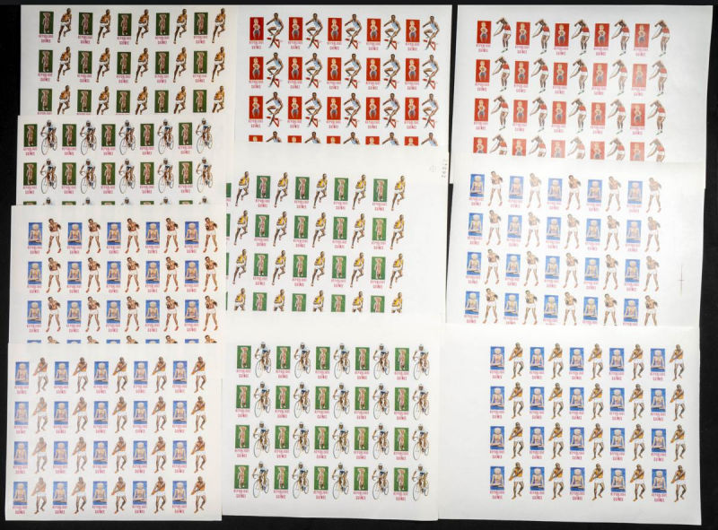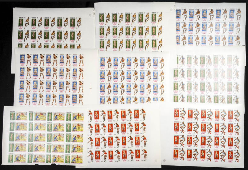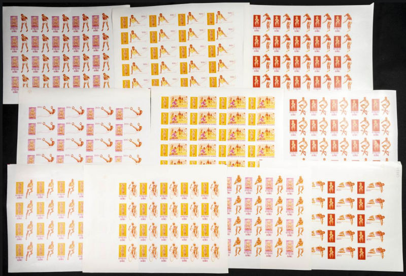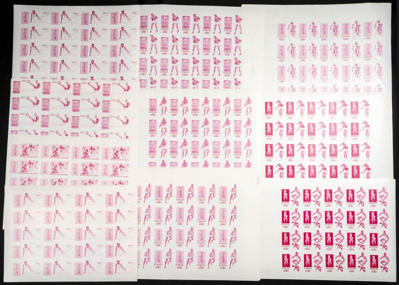 |**|Yvert 373/79. 1969. Olimpic games. Group of progressive plate proofs of the set. TO EXAM. Description of lots is limited to the cataloguing of the stamps and their characteristics. The total of the material included in each