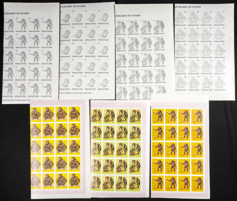 |**|Yvert 382/85. 1969. Monkeys. Group of progressive plate proofs of the set. TO EXAM. Description of lots is limited to the cataloguing of the stamps and their characteristics. The total of the material included in each case