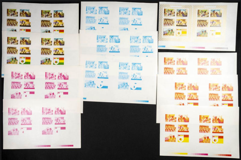 |**|Yvert 386/91. 1969. Scouting. Group of progressive plate proofs of the set. TO EXAM. Description of lots is limited to the cataloguing of the stamps and their characteristics. The total of the material included in each case