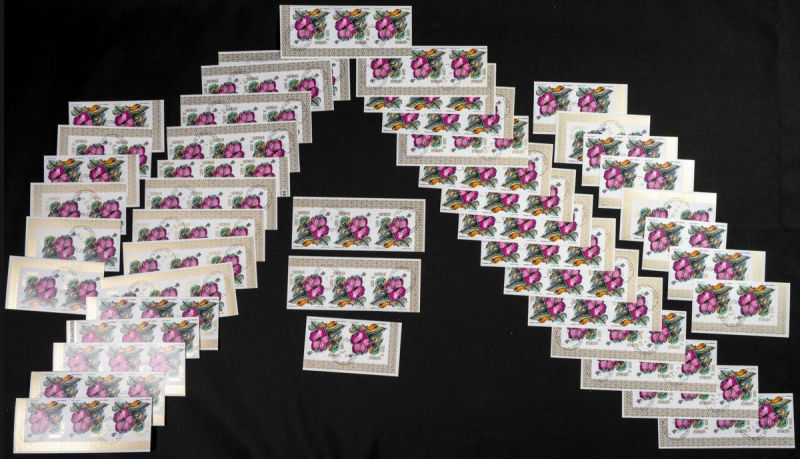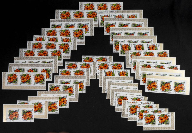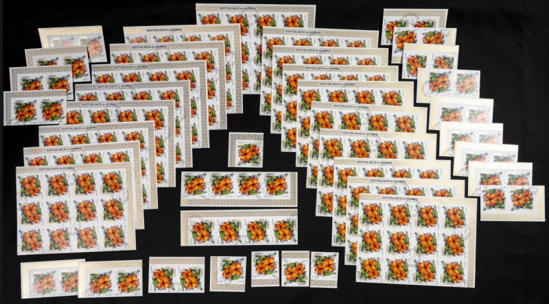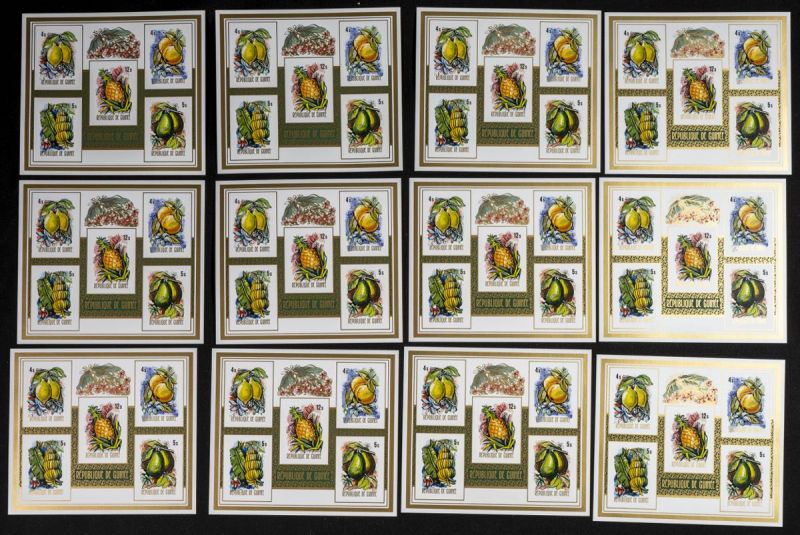|**|1974. Tropical fruit. Group of IMPERFORATED sets. (Michel: B38). TO EXAM. Description of lots is limited to the cataloguing of the stamps and their characteristics. The total of the material included in each case is