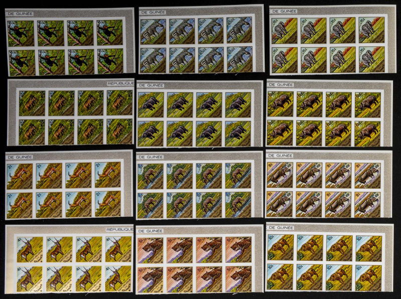 |**|Yvert 539/50. 1975. Animals. Group of IMPERFORATED sets. TO EXAM. Description of lots is limited to the cataloguing of the stamps and their characteristics. The total of the material included in each case is photographed to