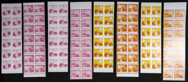|**|Yvert 539/50. 1975. Animals. Group of progressive plate proofs of the set. TO EXAM. Description of lots is limited to the cataloguing of the stamps and their characteristics. The total of the material included in each case