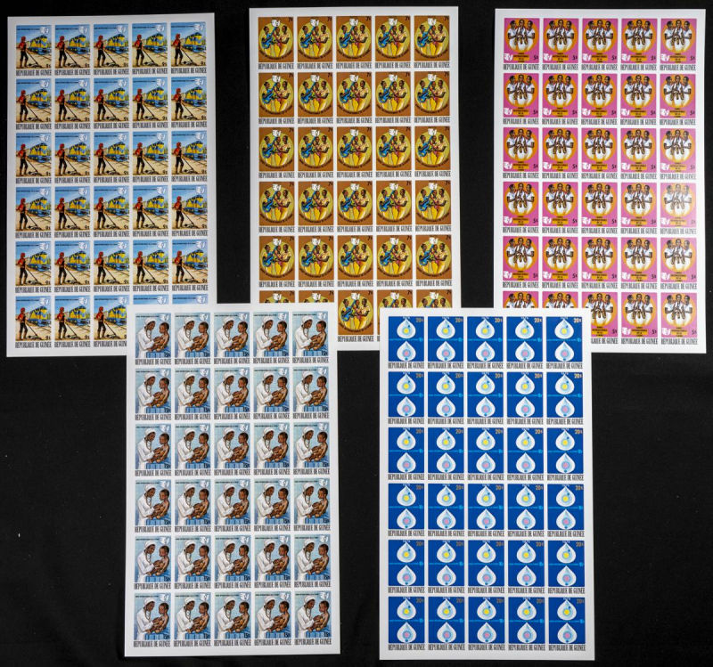 |**|Yvert 555/59. 1975. Int. year of women. Group of IMPERFORATED sets. TO EXAM. Description of lots is limited to the cataloguing of the stamps and their characteristics. The total of the material included in each case is