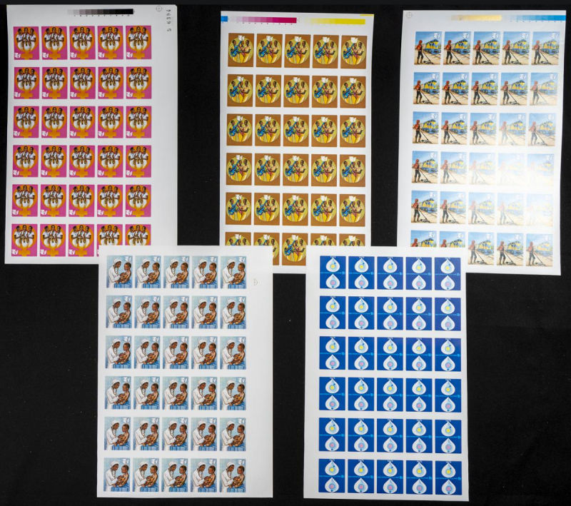 |**|Yvert 555/59. 1975. Int. year of women. Group of progressive plate proofs of the set. TO EXAM. Description of lots is limited to the cataloguing of the stamps and their characteristics. The total of the material included in