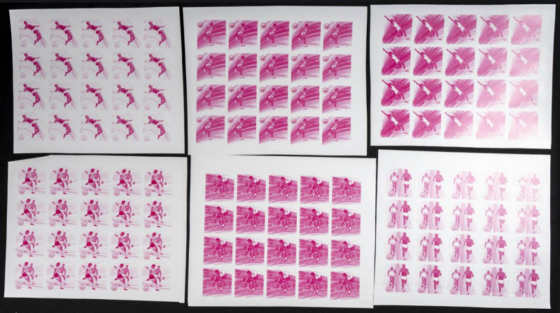|**|Yvert B32. 1976. Olympic games. Group of progressive plate proofs of the set. TO EXAM. Description of lots is limited to the cataloguing of the stamps and their characteristics. The total of the material included in each