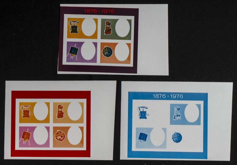|**|Yvert B34/35. 1976. Telephone centenary. Group of progressive plate proofs of the set. TO EXAM. Description of lots is limited to the cataloguing of the stamps and their characteristics. The total of the material included in