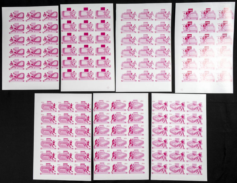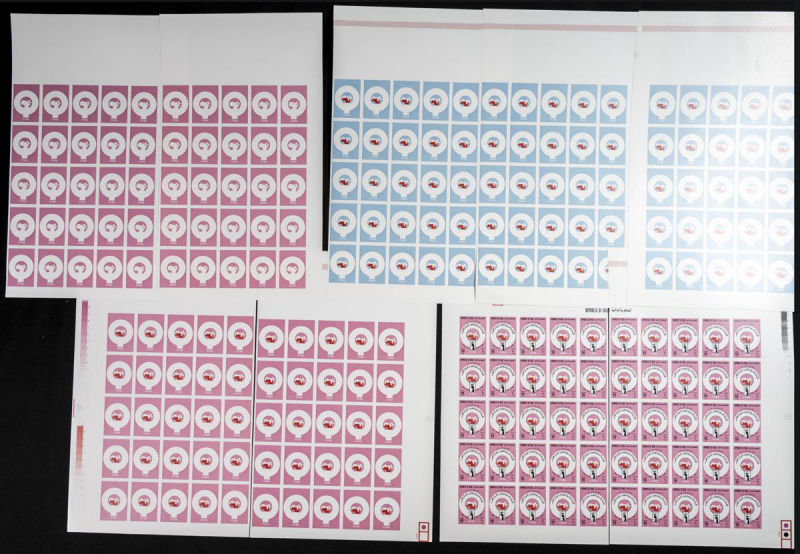 |**|Yvert 789/90. 1976. Arab trade union. Group of progressive plate proofs of the set. TO EXAM. Description of lots is limited to the cataloguing of the stamps and their characteristics. The total of the material included in