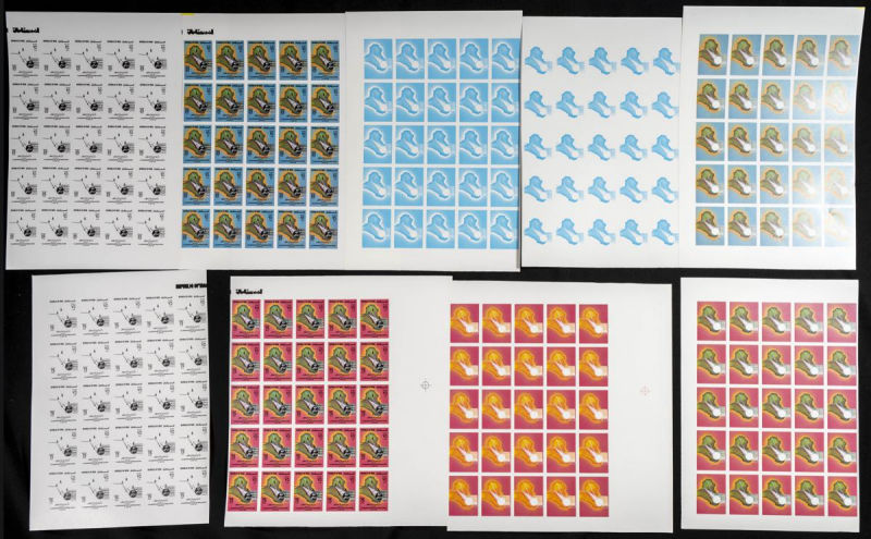 |**|Yvert 780/82. 1976. Illiteracy campaign. Group of progressive plate proofs of the set. TO EXAM. Description of lots is limited to the cataloguing of the stamps and their characteristics. The total of the material included in