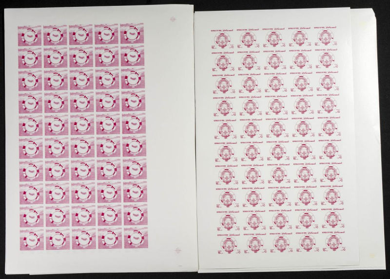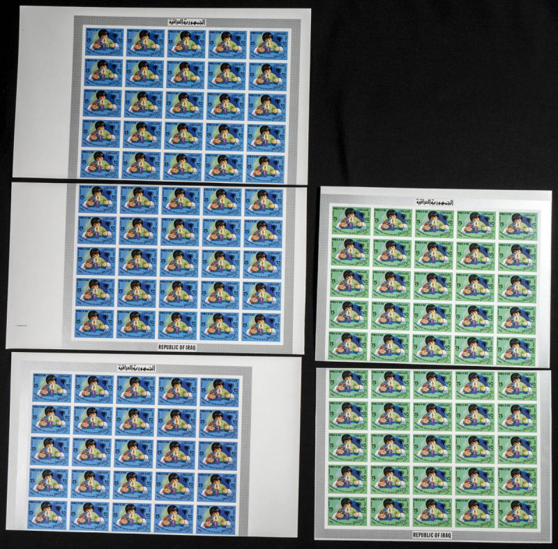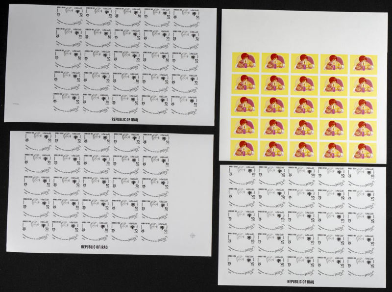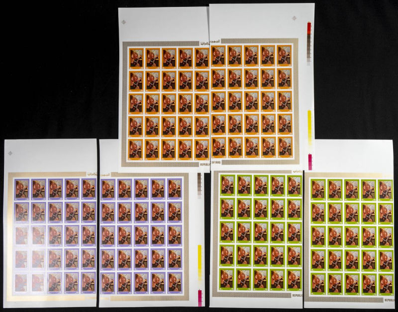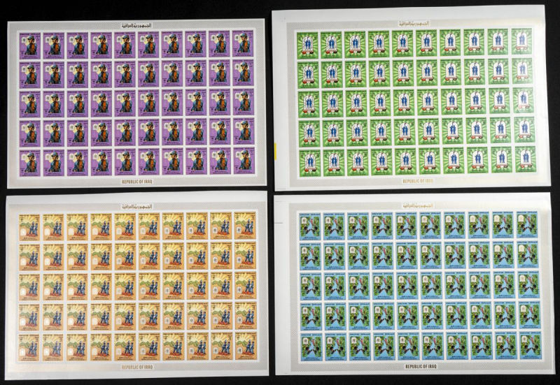 |**|Yvert 943/46. 1979. Saddam Hussein. Group of progressive plate proofs of the set. TO EXAM. Description of lots is limited to the cataloguing of the stamps and their characteristics. The total of the material included in each
