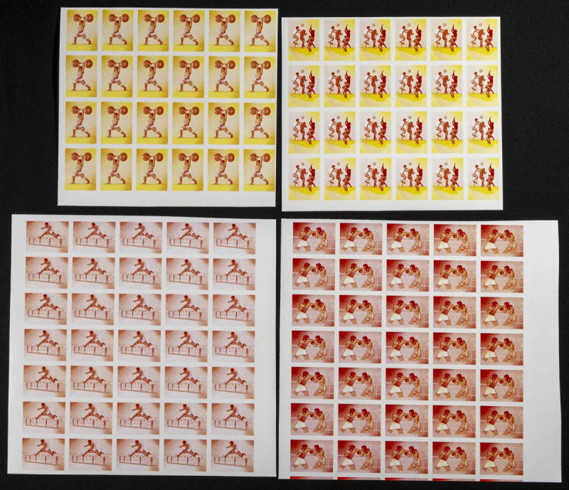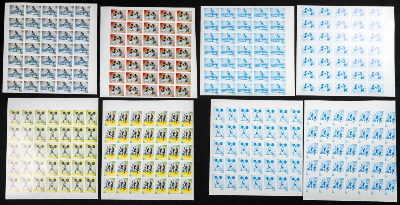 |**|Yvert 955/58. 1980. Olympic games Moscow. Group of progressive plate proofs of the set. TO EXAM. Description of lots is limited to the cataloguing of the stamps and their characteristics. The total of the material included
