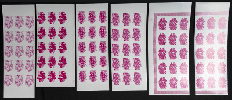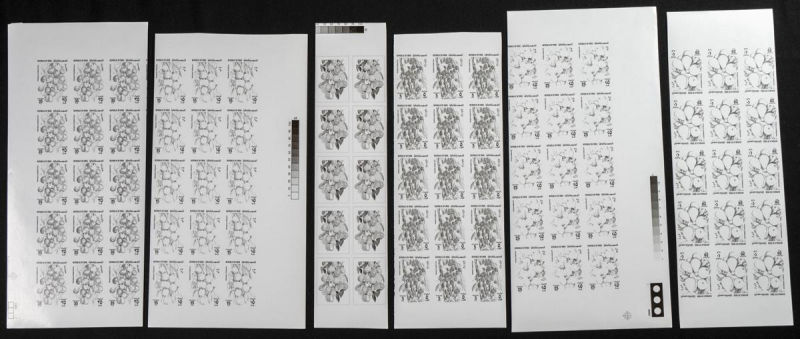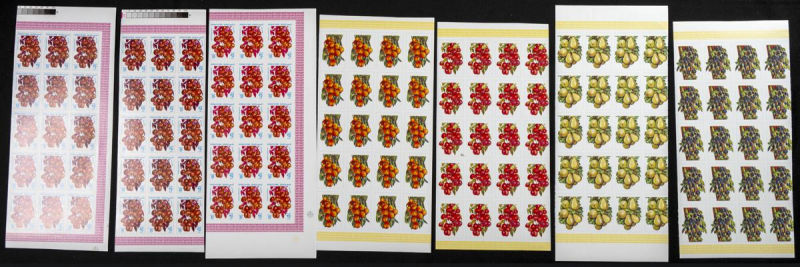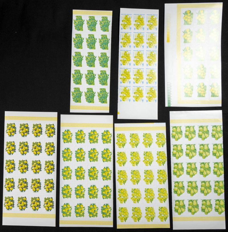 |**|Yvert 959/63. 1980. Fruits. Group of progressive plate proofs of the set. TO EXAM. Description of lots is limited to the cataloguing of the stamps and their characteristics. The total of the material included in each case is