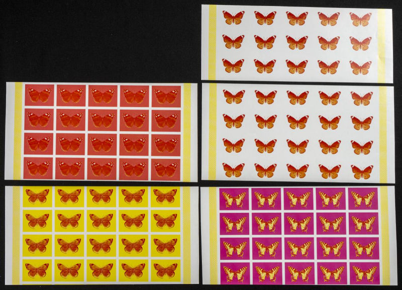 |**|Yvert 972/75. 1980. Butterflies. Group of progressive plate proofs of the set. TO EXAM. Description of lots is limited to the cataloguing of the stamps and their characteristics. The total of the material included in each