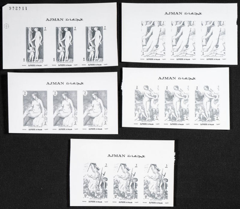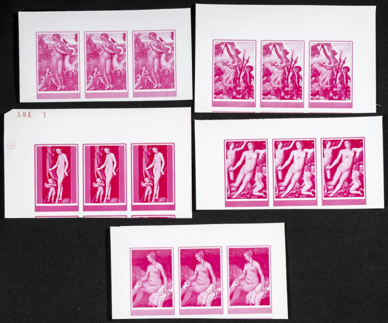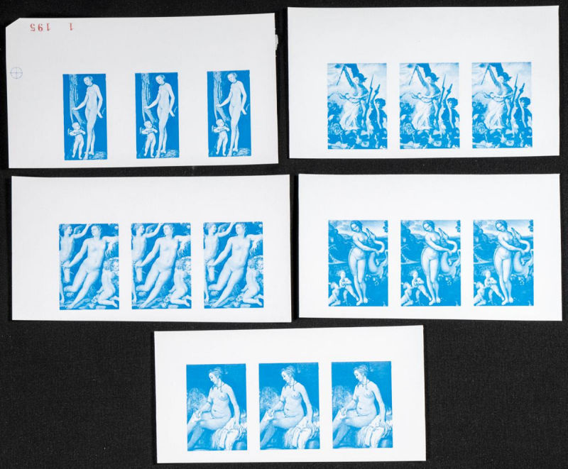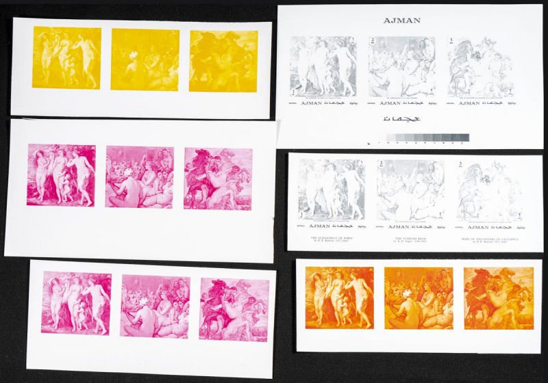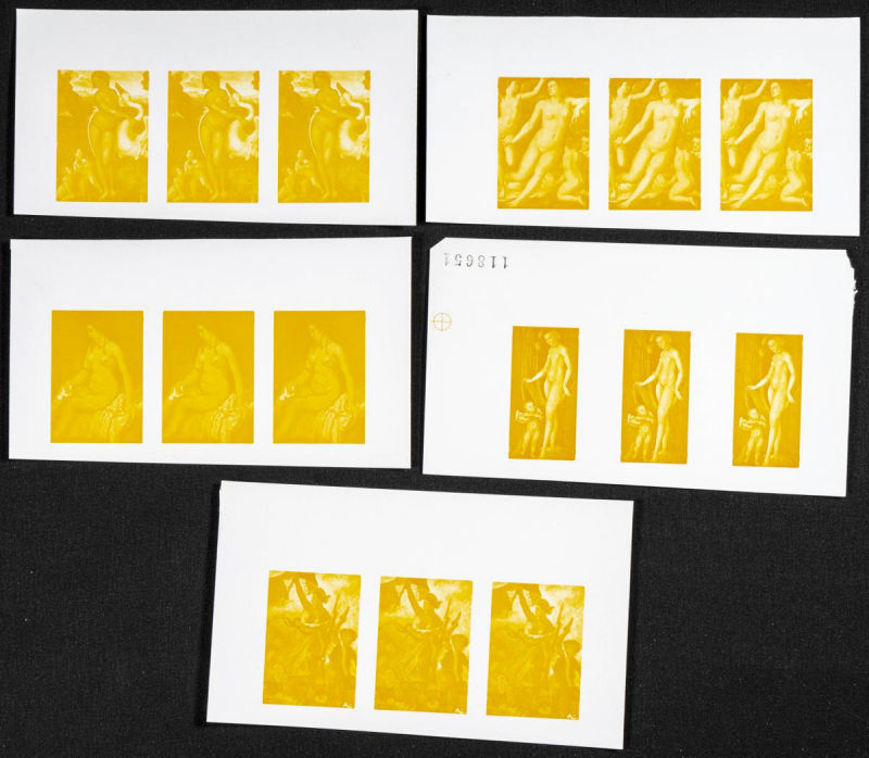 1970. Paintings. Group of progressive plate proofs of the set. (Michel: 552/59). TO EXAM. Description of lots is limited to the cataloguing of the stamps and their characteristics. The total of the material included in each case is