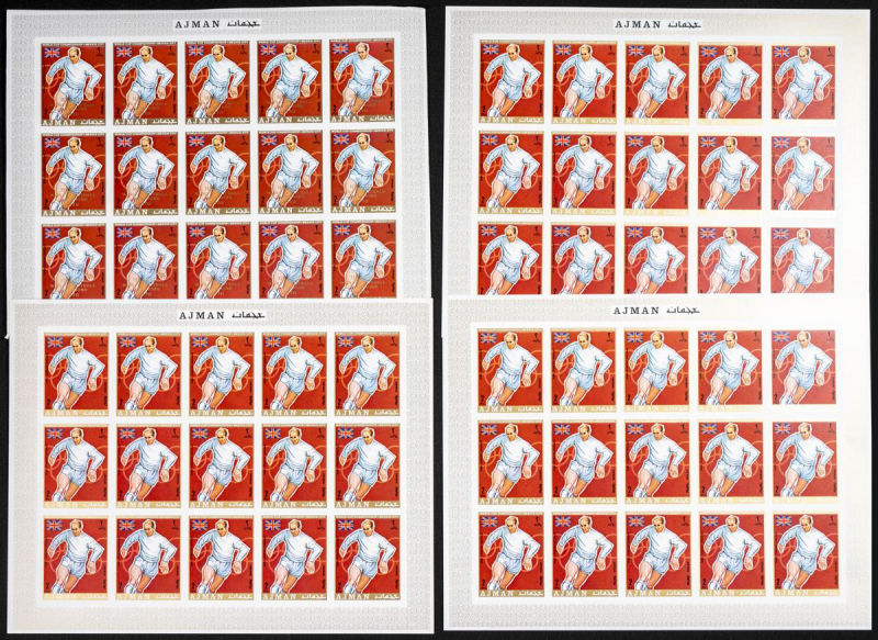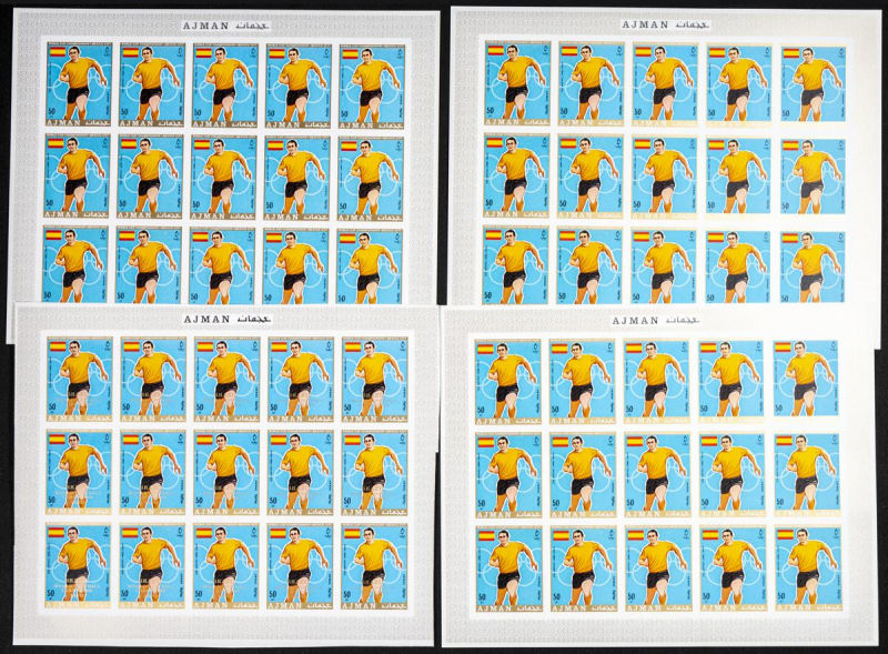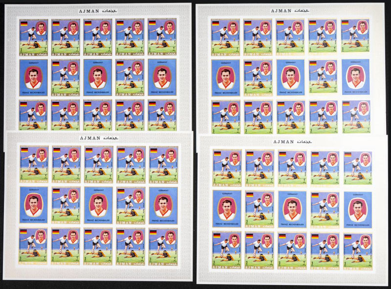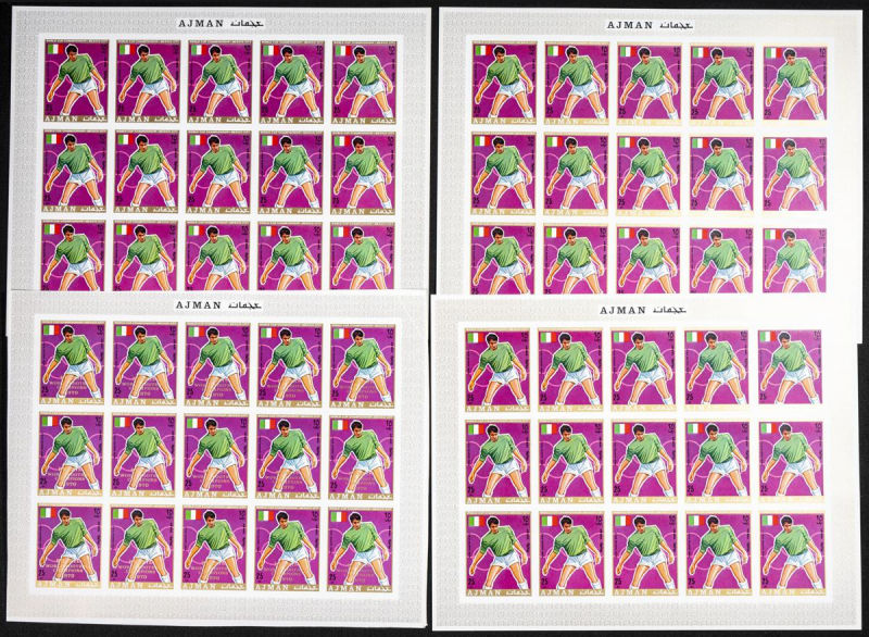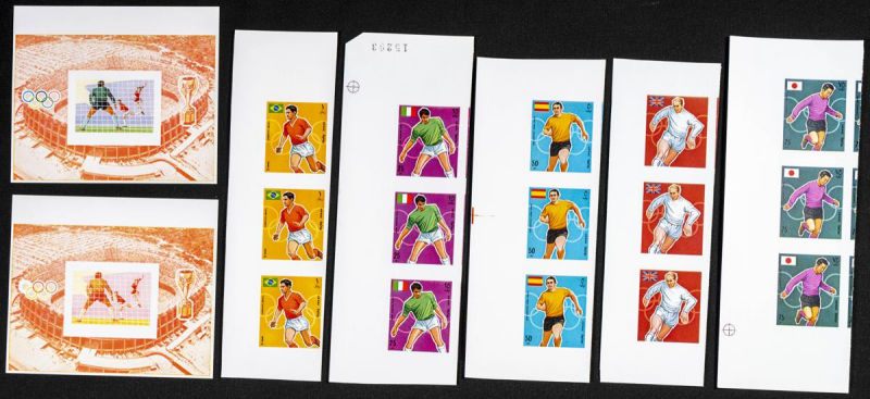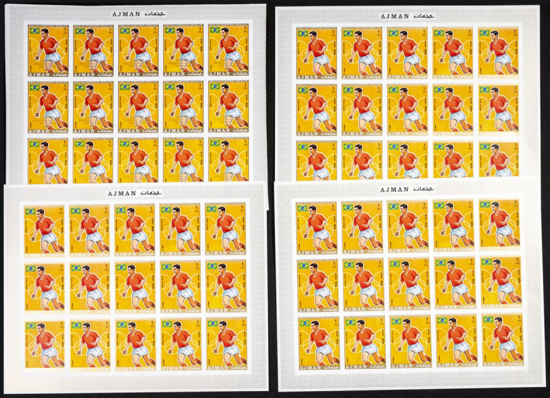 1970. World Cup Football winners. Group of IMPERFORATED sets. (Michel: 586/91). TO EXAM. Description of lots is limited to the cataloguing of the stamps and their characteristics. The total of the material included in each case is