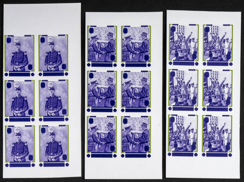 1970. Charles de Gaulle. Group of progressive plate proofs of the set. (Michel: 655/60). TO EXAM. Description of lots is limited to the cataloguing of the stamps and their characteristics. The total of the material included in each case is