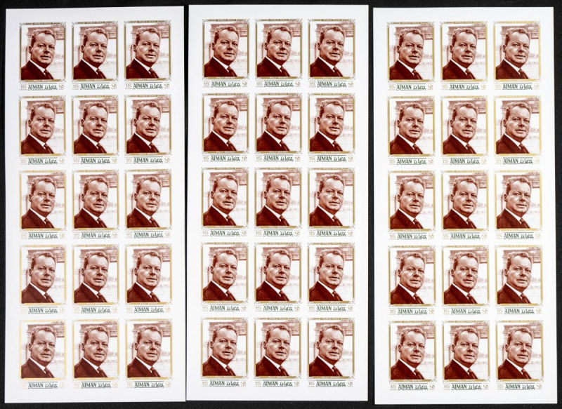 1970. Peace personalities. Group of IMPERFORATED sets. (Michel: 1246/53). TO EXAM. Description of lots is limited to the cataloguing of the stamps and their characteristics. The total of the material included in each case is photographed to