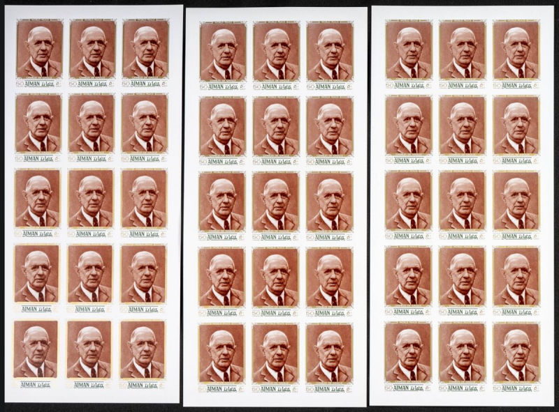 1970. Charles de Gaulle. Group of IMPERFORATED sets. (Michel: 655/60). TO EXAM. Description of lots is limited to the cataloguing of the stamps and their characteristics. The total of the material included in each case is photographed to