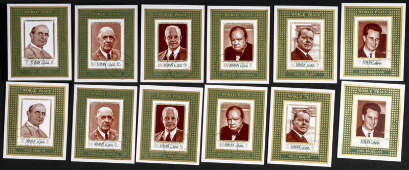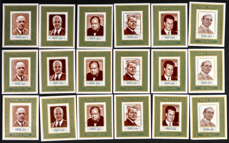1970. Peace personalities. Group of complete set IMPERFORATED on individual sheets. (Michel: 1246/53). TO EXAM. Description of lots is limited to the cataloguing of the stamps and their characteristics. The total of the material included in