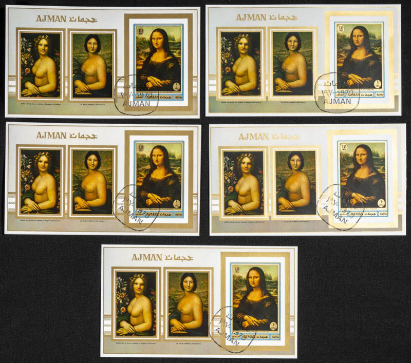 1970. Mona Lisa. Group of IMPERFORATED sets. (Michel: B192). TO EXAM. Description of lots is limited to the cataloguing of the stamps and their characteristics. The total of the material included in each case is photographed to allow an