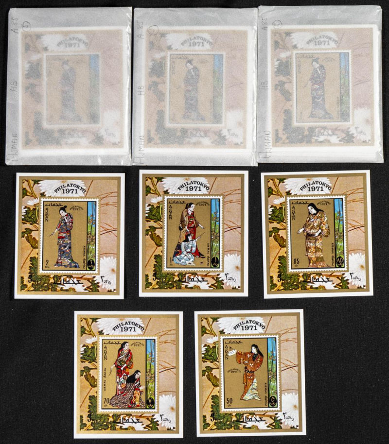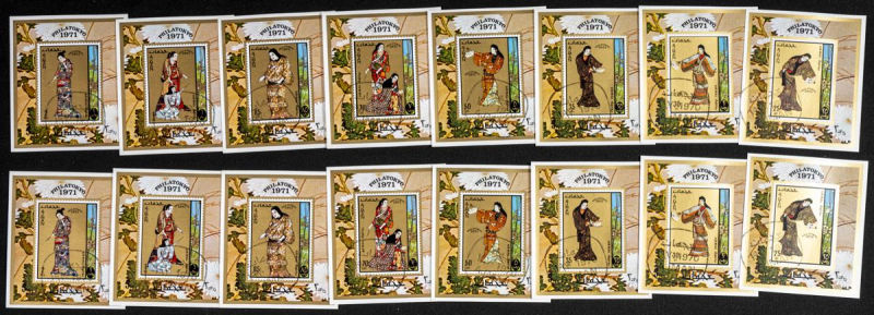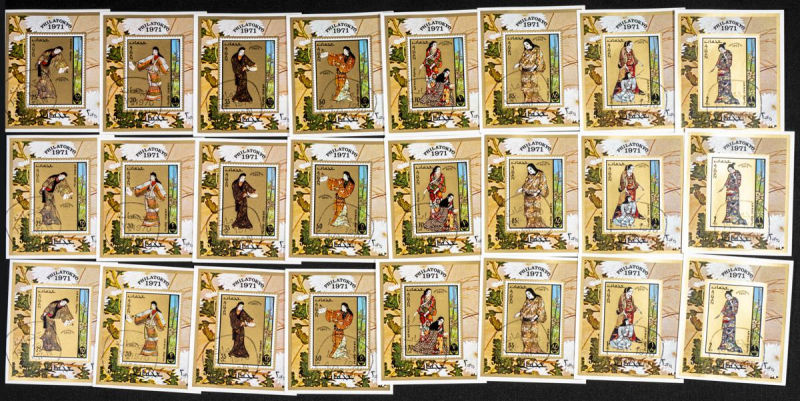 1971. Philatokyo. Group of complete set IMPERFORATED on individual sheets. (Michel: 670/77). TO EXAM. Description of lots is limited to the cataloguing of the stamps and their characteristics. The total of the material included in each case