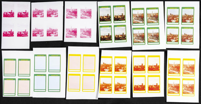 1971. Olympic Games Munich. Group of progressive plate proofs of the set. (Michel: 693/00). TO EXAM. Description of lots is limited to the cataloguing of the stamps and their characteristics. The total of the material included in each case