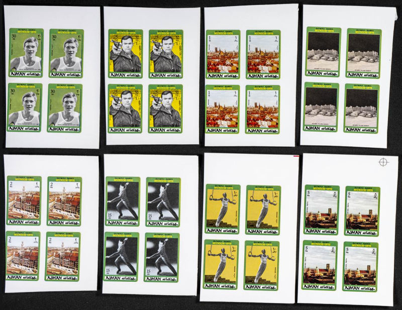 1971. Olympic Games Munich. Group of complete set IMPERFORATED on individual sheets. (Michel: 693/00). TO EXAM. Description of lots is limited to the cataloguing of the stamps and their characteristics. The total of the material included in