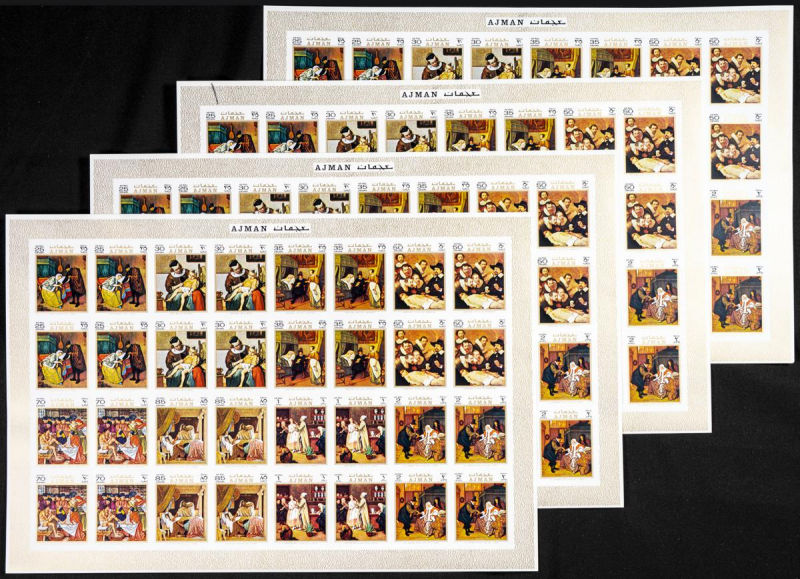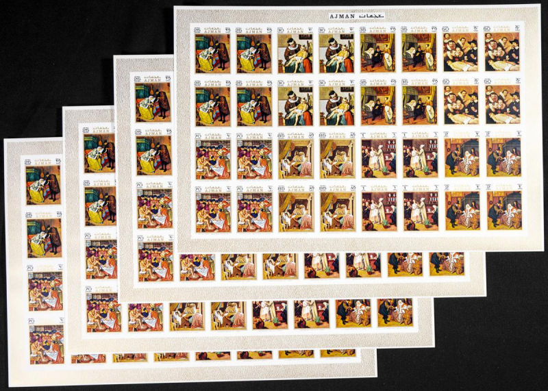 1971. Paintings. Group of IMPERFORATED sets. (Michel: 710/17). TO EXAM. Description of lots is limited to the cataloguing of the stamps and their characteristics. The total of the material included in each case is photographed to allow an