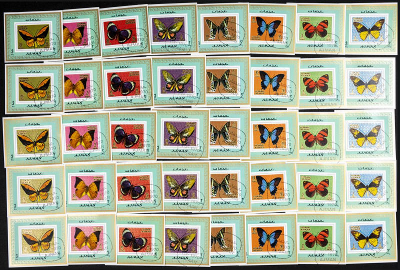 1971. Butterflies. Group of complete set IMPERFORATED on individual sheets. (Michel: 747/54). TO EXAM. Description of lots is limited to the cataloguing of the stamps and their characteristics. The total of the material included in each