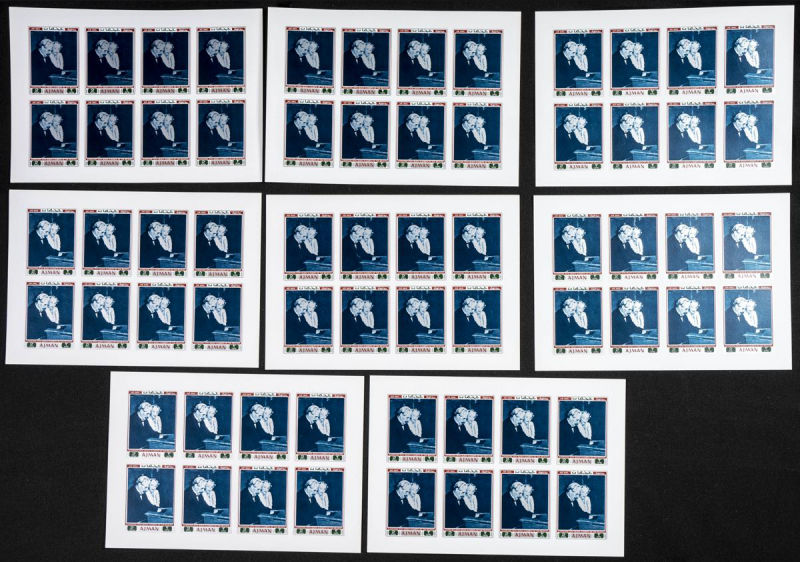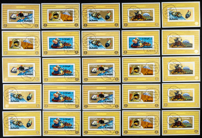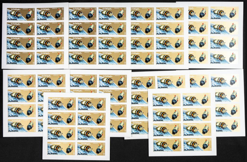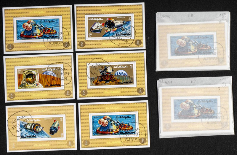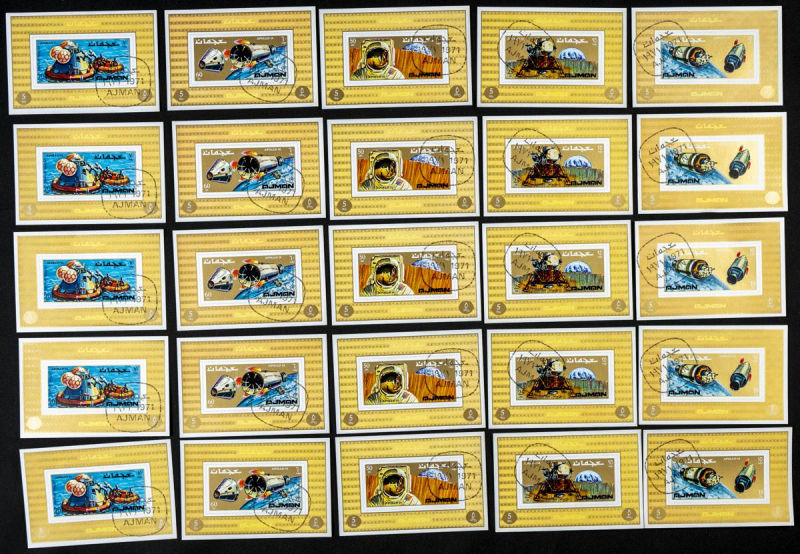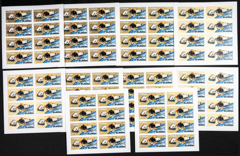 1971. Apollo 14. Group of complete set IMPERFORATED on individual sheets. (Michel: 755/60). TO EXAM. Description of lots is limited to the cataloguing of the stamps and their characteristics. The total of the material included in each case