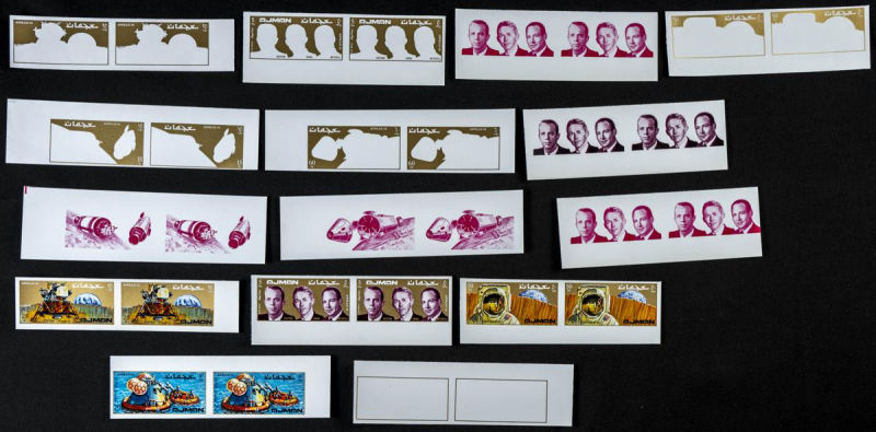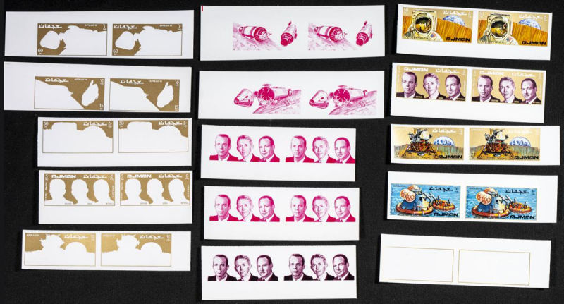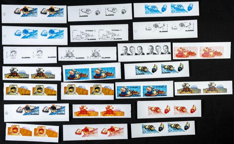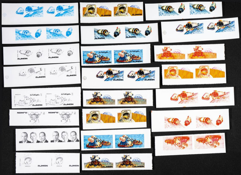 1971. Apollo 14. Group of progressive plate proofs of the set. (Michel: 755/60). TO EXAM. Description of lots is limited to the cataloguing of the stamps and their characteristics. The total of the material included in each case is