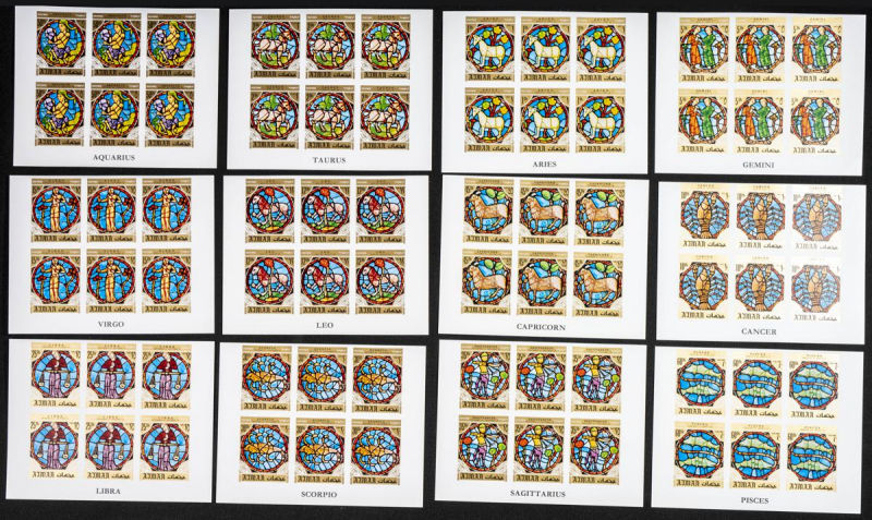 1971. Zodiac, Notre Dame windows. Group of IMPERFORATED sets. (Michel: 769/80). TO EXAM. Description of lots is limited to the cataloguing of the stamps and their characteristics. The total of the material included in each case is