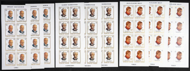 1971. Famous persons. Group of IMPERFORATED sets. (Michel: 781/92). TO EXAM. Description of lots is limited to the cataloguing of the stamps and their characteristics. The total of the material included in each case is photographed to allow