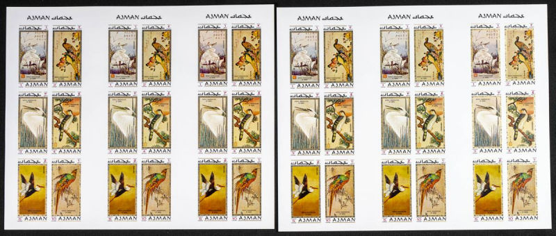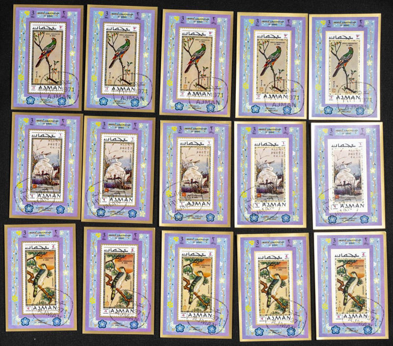 1971. Exotic birds, paintings. Group of IMPERFORATED sets. (Michel: 809/16). TO EXAM. Description of lots is limited to the cataloguing of the stamps and their characteristics. The total of the material included in each case is photographed