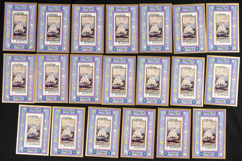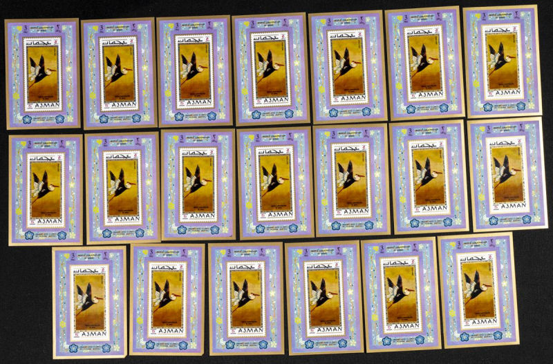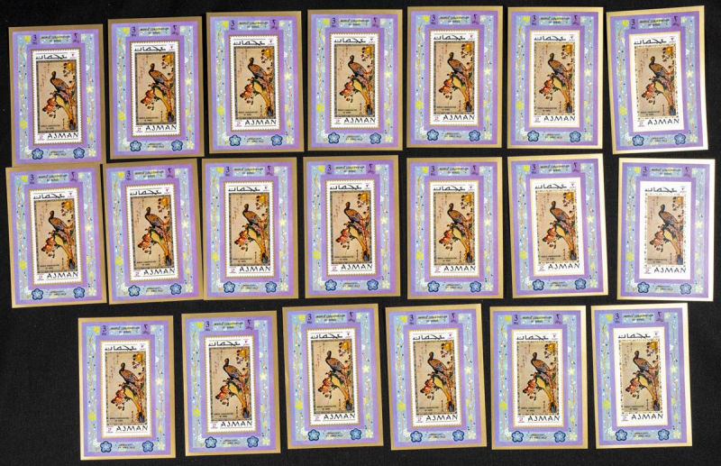 1971. Exotic birds, paintings. Group of complete set IMPERFORATED on individual sheets. (Michel: 809/16). TO EXAM. Description of lots is limited to the cataloguing of the stamps and their characteristics. The total of the material included