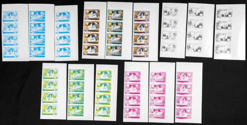 |**|Yvert 593. 1974. U.P.U.. Group of progressive plate proofs of the set. TO EXAM. Description of lots is limited to the cataloguing of the stamps and their characteristics. The total of the material included in each case is