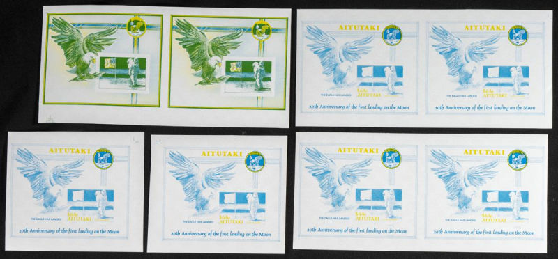 |**|Yvert . 1989. Moonlanding anniversary. Group of progressive plate proofs of the set. (Michel: B73). TO EXAM. Description of lots is limited to the cataloguing of the stamps and their characteristics. The total of the