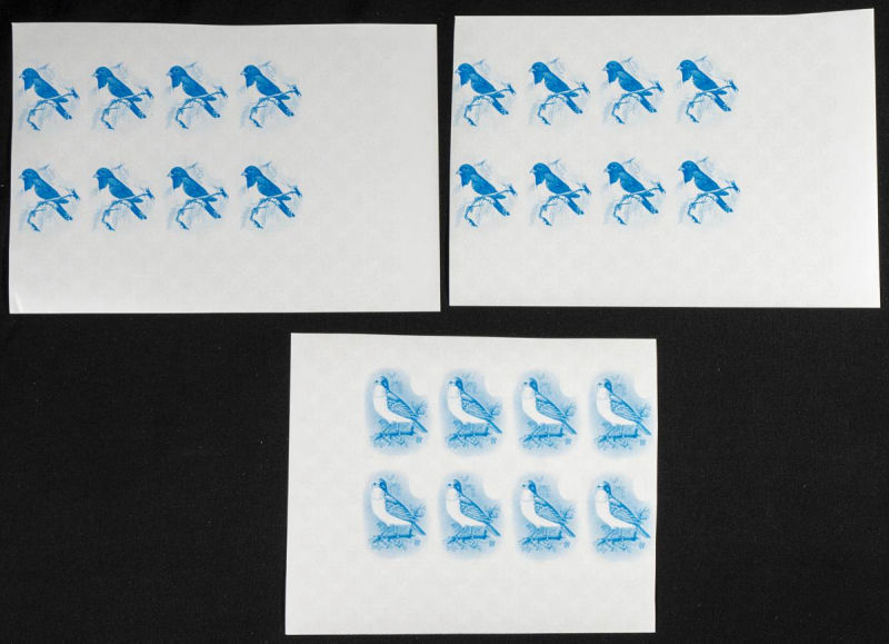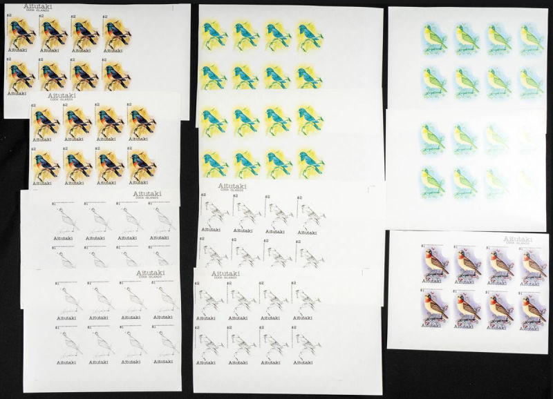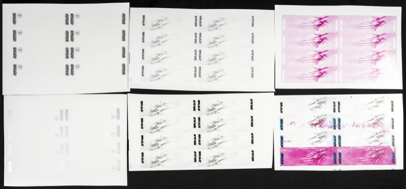 |**|Yvert . 1990. Birds. Group of progressive plate proofs of the set. (Michel: 316/17). TO EXAM. Description of lots is limited to the cataloguing of the stamps and their characteristics. The total of the material included in